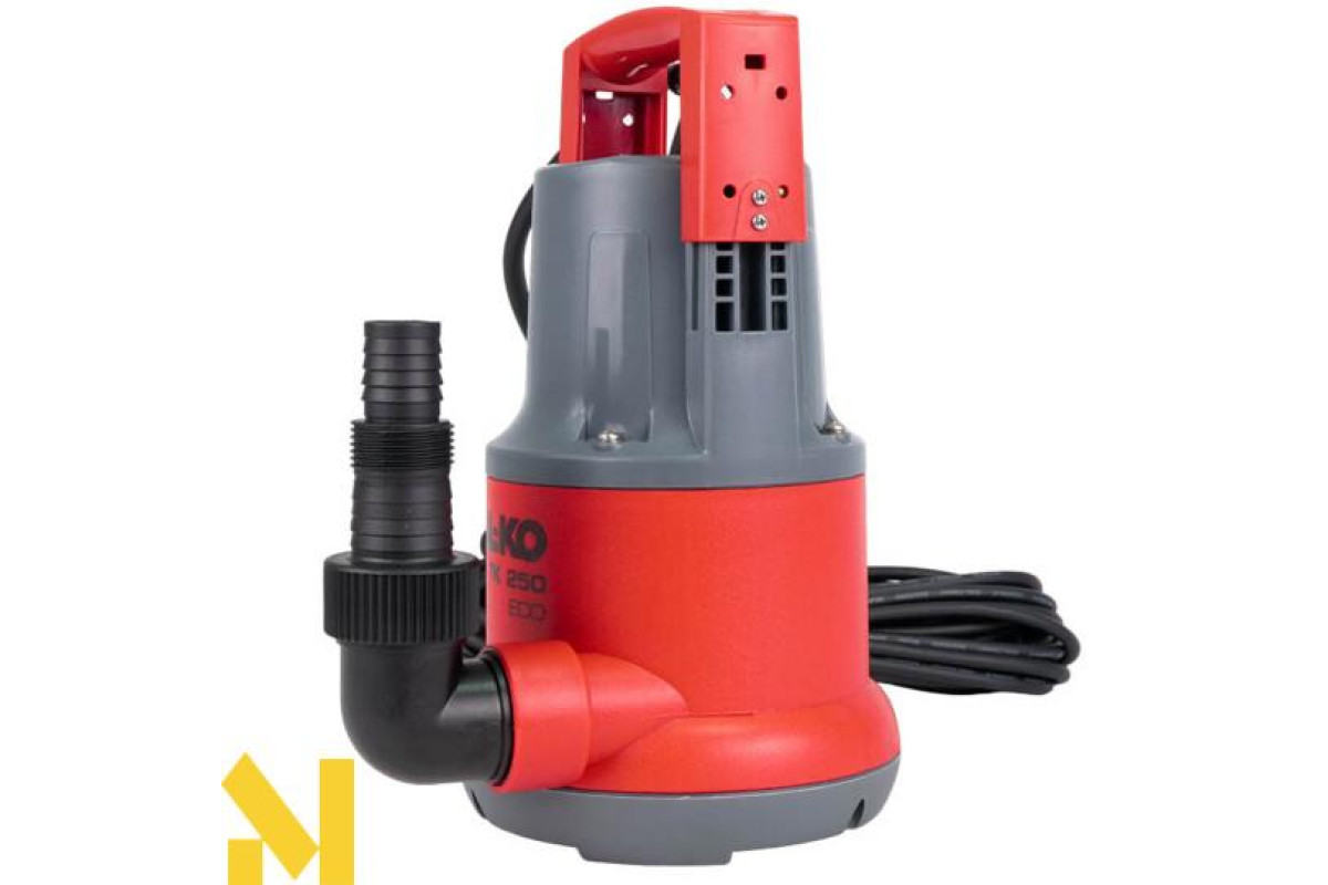 - Насос дренажного типу з електричним приводом потужністю 250 Вт здатний відкачувати незабруднену і слабозагрязненну воду до мінімального рівня 5 мм.