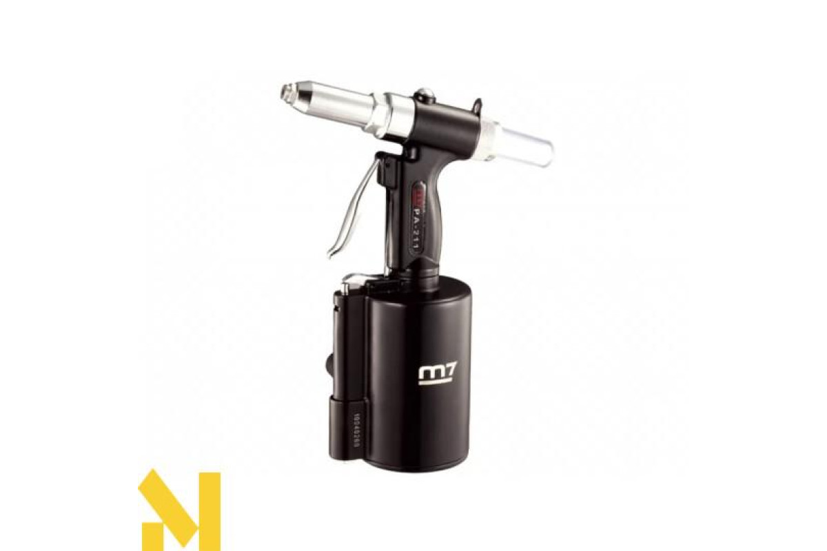 Пневматичний заклепочник Mighty Seven PA-211 - інструмент для скріплення металевих матеріалів між собою за допомогою витяжних заклепок. Цей пневматичний інструмент працює за допомогою стисненого повітря, який надходить до нього з компресора.