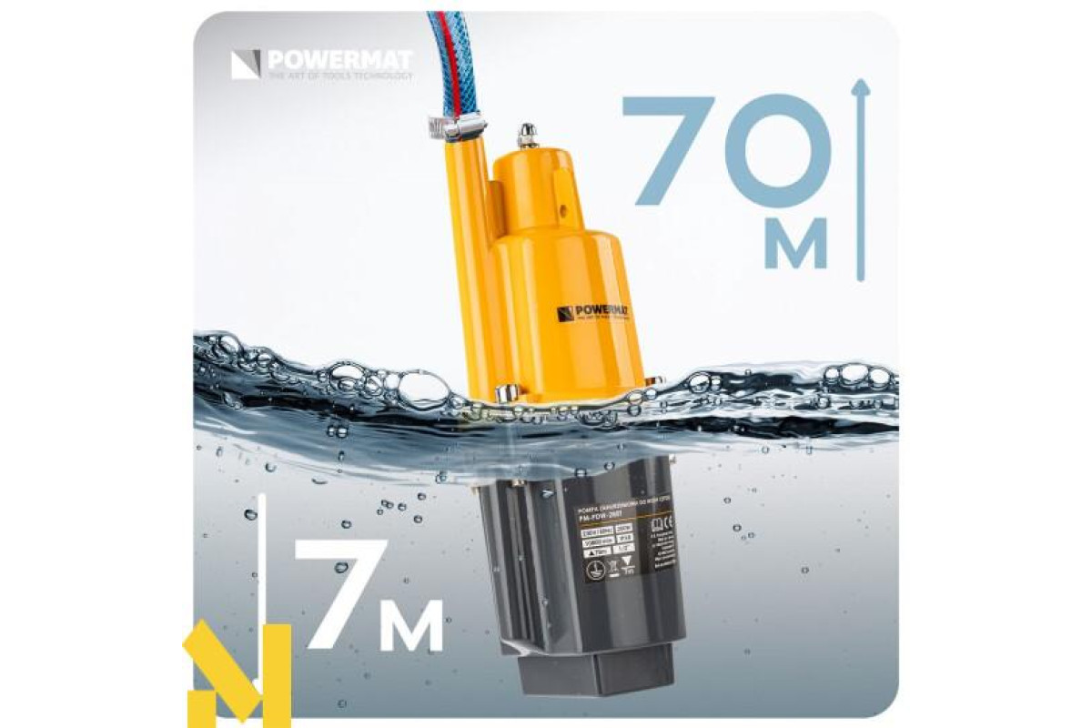 Мембранний насос Powermat для чистої води, який дозволяє швидко відкачувати воду з колодязів, резервуарів та затоплених місць. Ви отримуєте високу продуктивність при низькому енергоспоживанні, можливість роботи в обмеженому просторі, стійкість до забруднень, а також просту установку та безпечну роботу в зануреному стані без складного обслуговування: