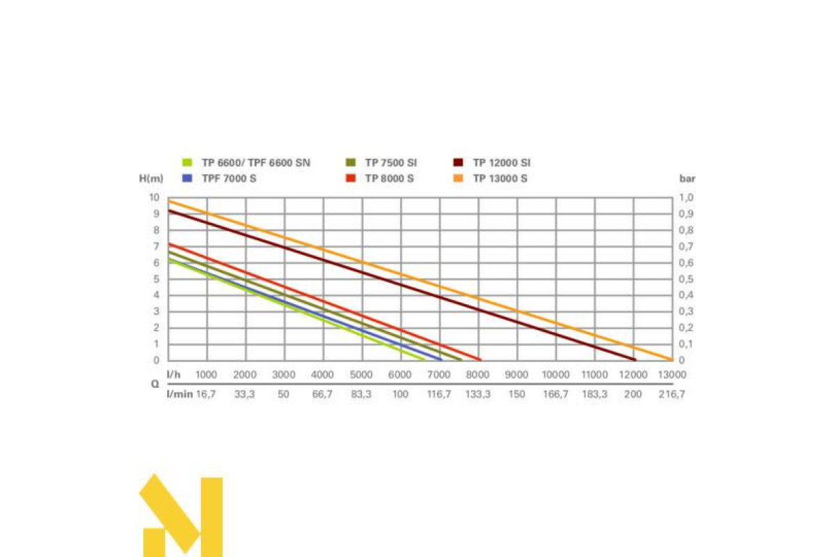 Технічні характеристики Metabo TP 13000 S дозволяють також перекачувати гарячу воду (до 3х хвилин, 90° С).