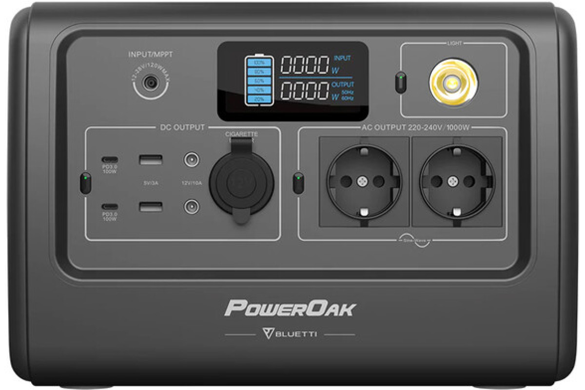 - Вихід розетка 220V2 розетки (загальна потужність 1000 Вт, 230 В)