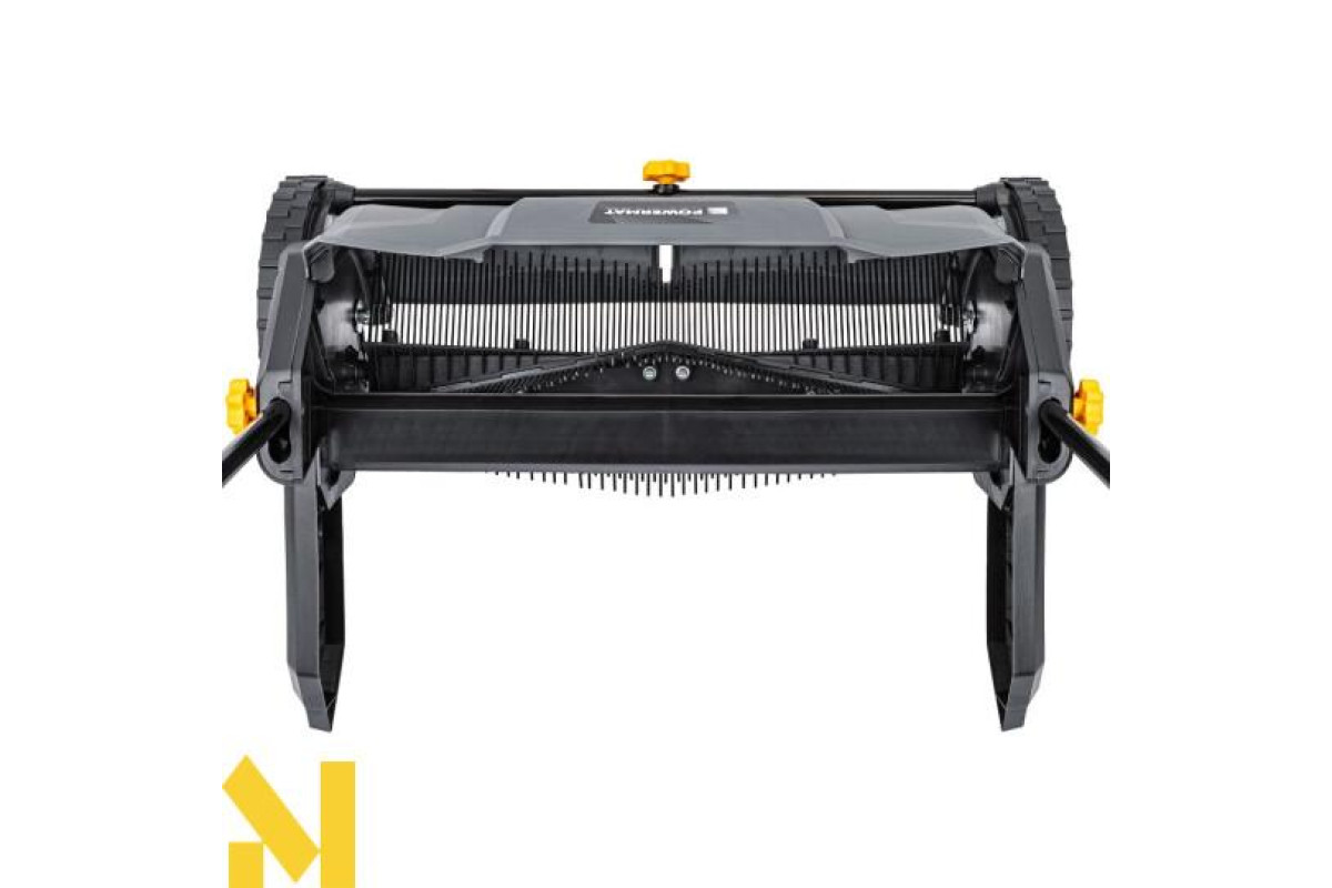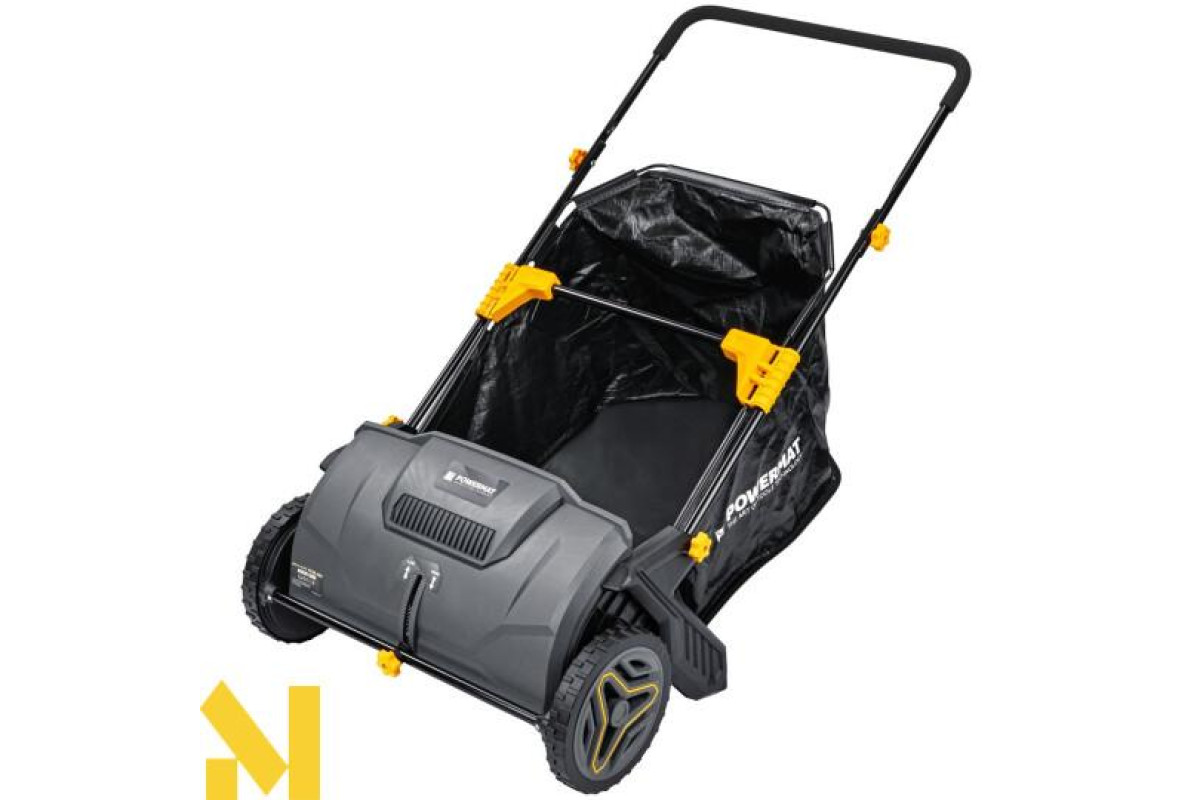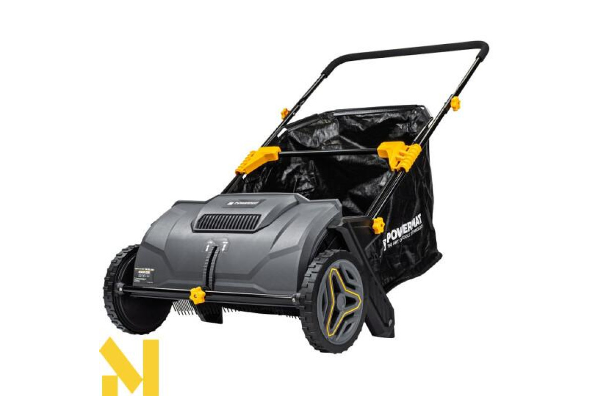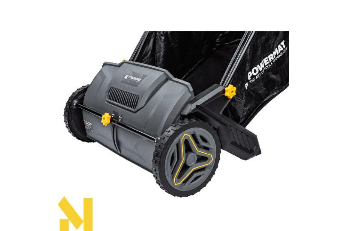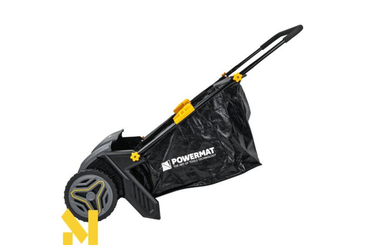 Обертові щітки, що активуються рухом коліс, збирають листя, траву та дрібні гілочки в кошик, забезпечуючи рівномірну роботу без двигуна.