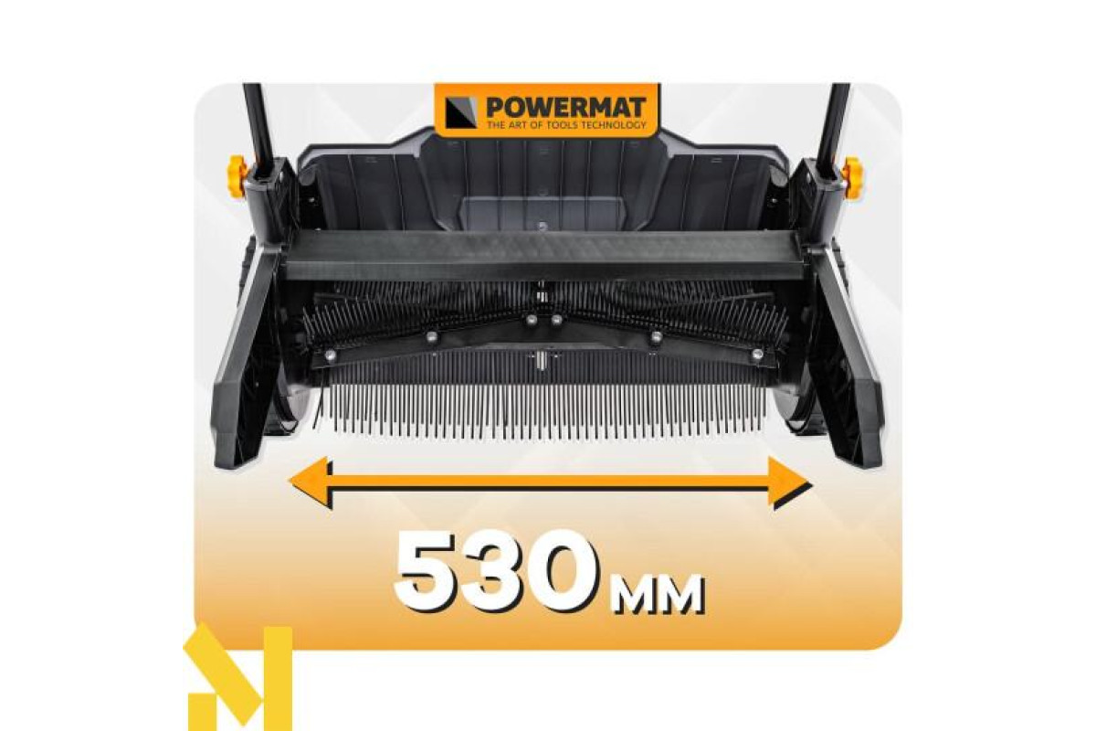 Ефективне збирання трави на великих площах завдяки робочій ширині 53 см (530 мм), що пришвидшує прибирання газонів та доріжок.