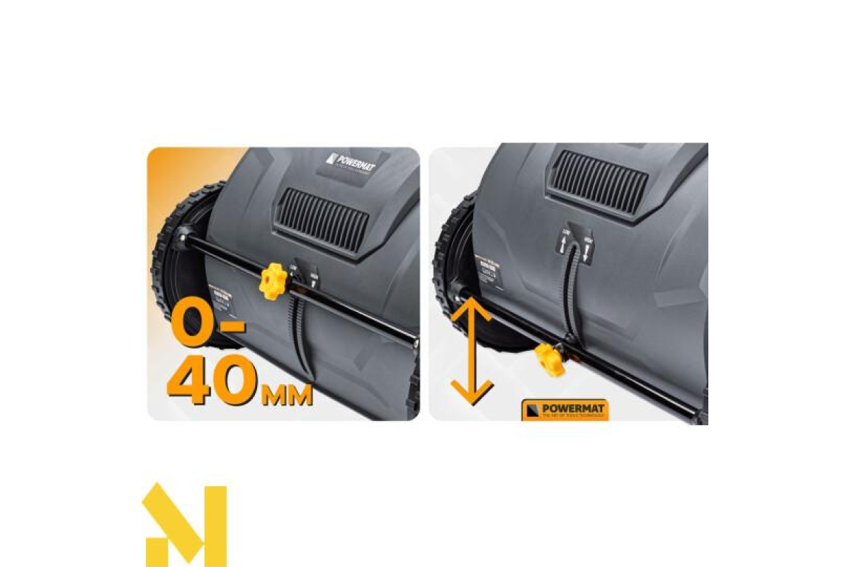 Функціяплавного регулювання робочої висотив діапазоні від 0 до 40 мм дозволяє адаптувати пристрій до типу поверхні – від гладких доріжок до нерівних газонів.