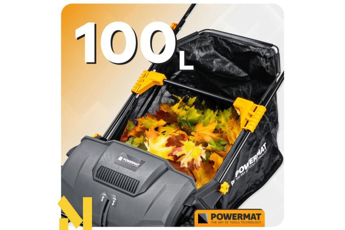 Кошик об'ємом 100 літрів дозволяєпрацювати тривалий час без перерв на спорожнення.