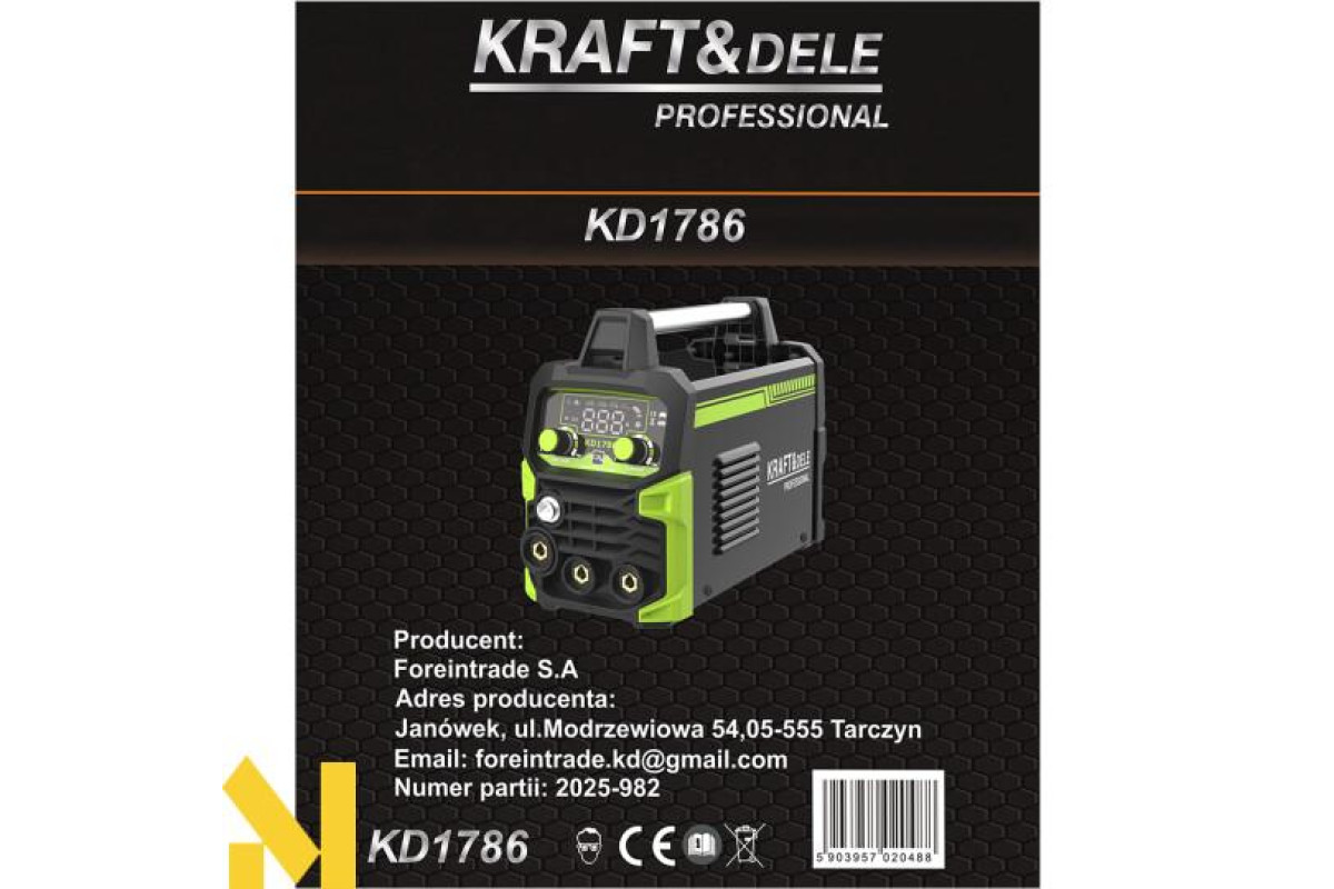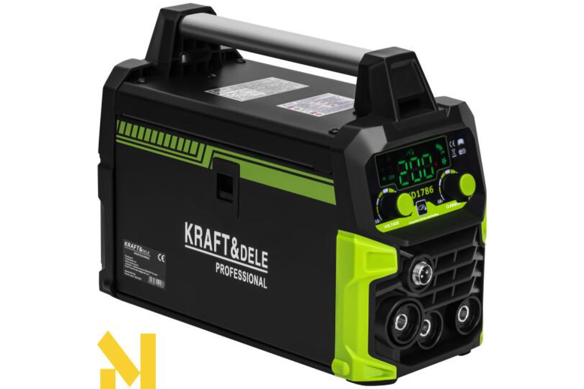 KD1786 — це сучасний інверторний зварювальний апарат марки KRAFT&DELE, розроблений для широкого спектра застосувань — від майстерень та сервісних робіт до польових робіт та ремонтів у приміщеннях. Пристрій поєднує компактну конструкцію з високою продуктивністю, забезпечуючи стабільну та точну роботу в багатьох режимах зварювання.