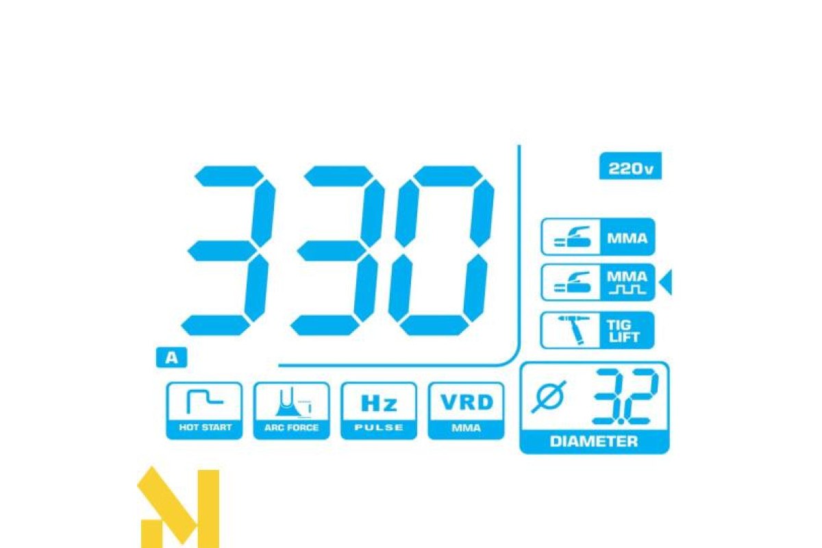 Апарат зварює струмом від 20 до 330А і дозволяє зварювати електродом діаметром від 1,6 мм до 4 мм.