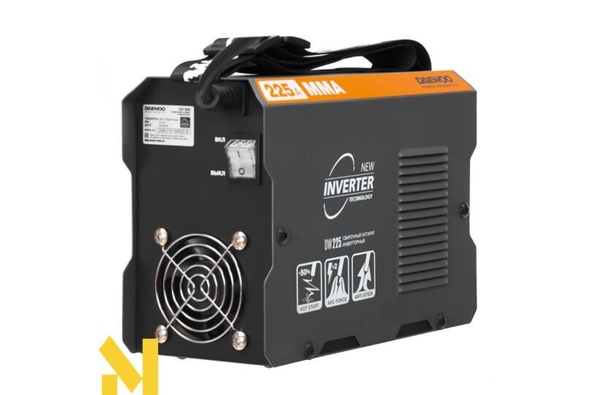 Daewoo DW 225 - зварювальний апарат з інверторною технологією. Сварка здійснюється штучними електродами з покриттям. Відмінна продуктивність в поєднанні з безшумною роботою і високою якістю зварних швів характеризують роботу цієї моделі.