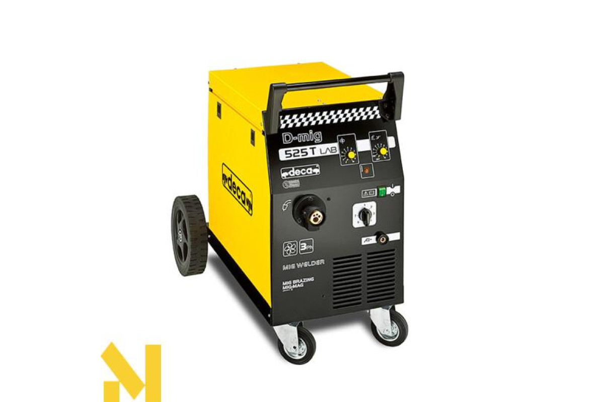 D-mig 525 T LAB забезпечує силу струму 220 А і може працювати з дротом діаметром від 0,6 до 1,0 мм. Напруга живлення трифазна 230/400 Вольт.