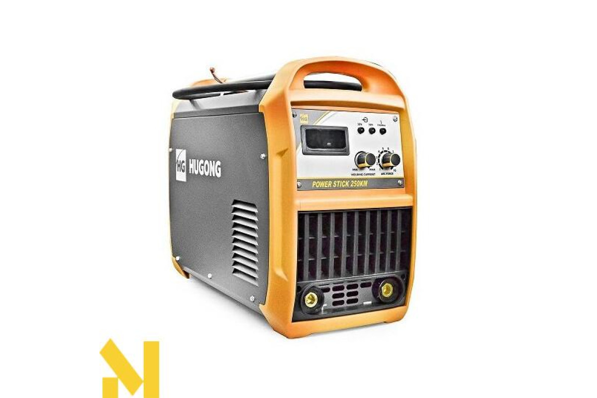 HUGONG PowerStick 250 KM 220 / 380В - професійний зварювальний інвертор для ручного дугового зварювання і наплавлення покритим електродом ММА на постійному струмі DC виробів із чавуну, маловуглецевої і середньовуглецевої, хромової, марганцевистої і легованої сталі, а також аргонодугового зварювання неплавким електродом TIG на постійному струмі. Апарат призначений для тривалої роботи електродами до 5 мм і може використовуватися як в побуті так і на невеликому виробництві, при монтажі металоконструкцій на будівельних майданчиках та ін. Живлення як від мережі 220В, так і 380В з можливістю роботи від автономної електростанції роблять цей апарат незамінним для проведення аварійно-рятувальних робіт, ремонтно-відновлювальних робіт в будівлях і спорудах, зварювальних робіт в гаражі, на дачі, в підсобному господарстві та ін. Регульований «Форсаж дуги» підвищує стабільність зварювання на короткій дузі, покращує запалювання дуги і зменшує ймовірність залипання електрода при зварюванні.