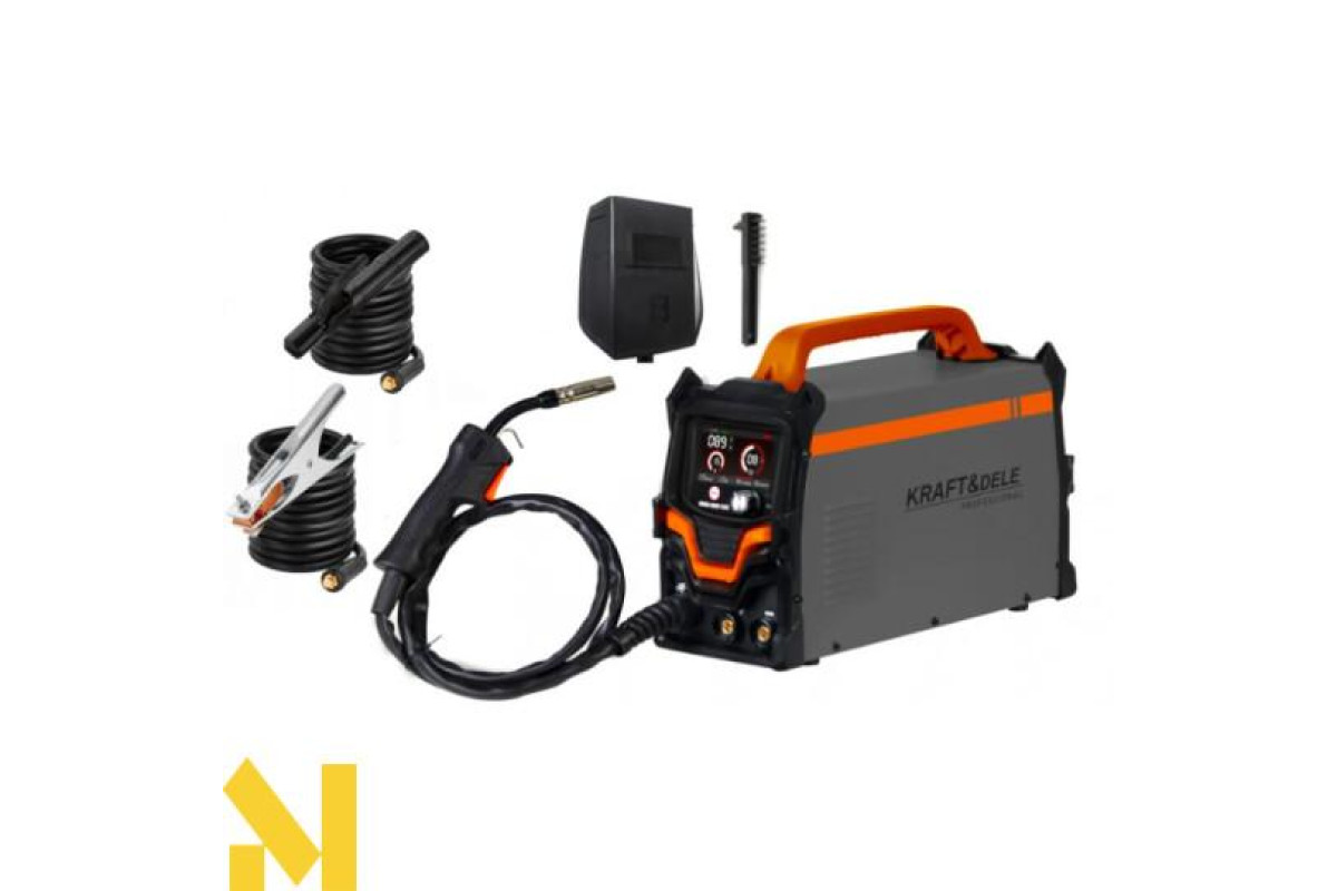 Зварювальний апарат Kraft&Dele, модельKD3421,- напівавтомат універсального призначення, призначений для зварювання нержавіючої сталі, легованої сталі, вуглецевої сталі, міді та інших кольорових металів. Зварювальний апарат має однофазне живлення і виготовлений за інверторною технологією IGBT . Цей продукт призначений для зварювання MIG ( флюсом ) із захистом від газу та для зварювання покритими електродами постійним струмом (DC). покриті електроди діаметром до 4 мм.