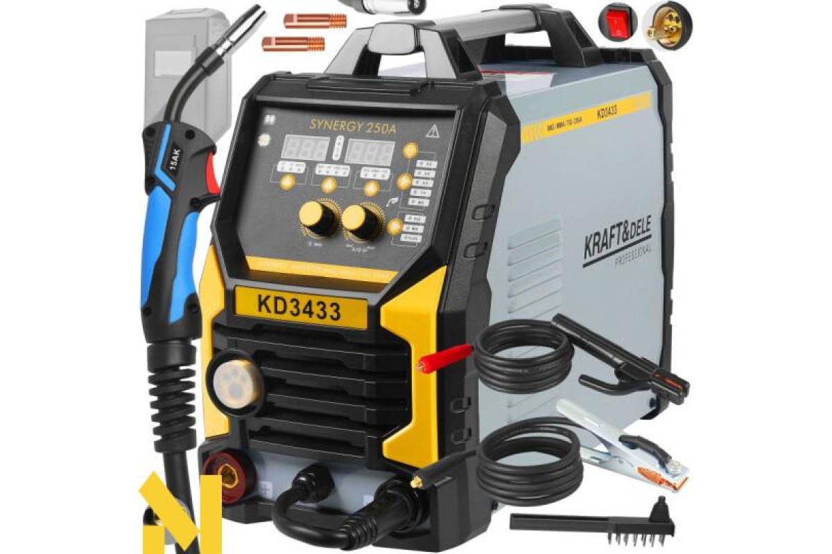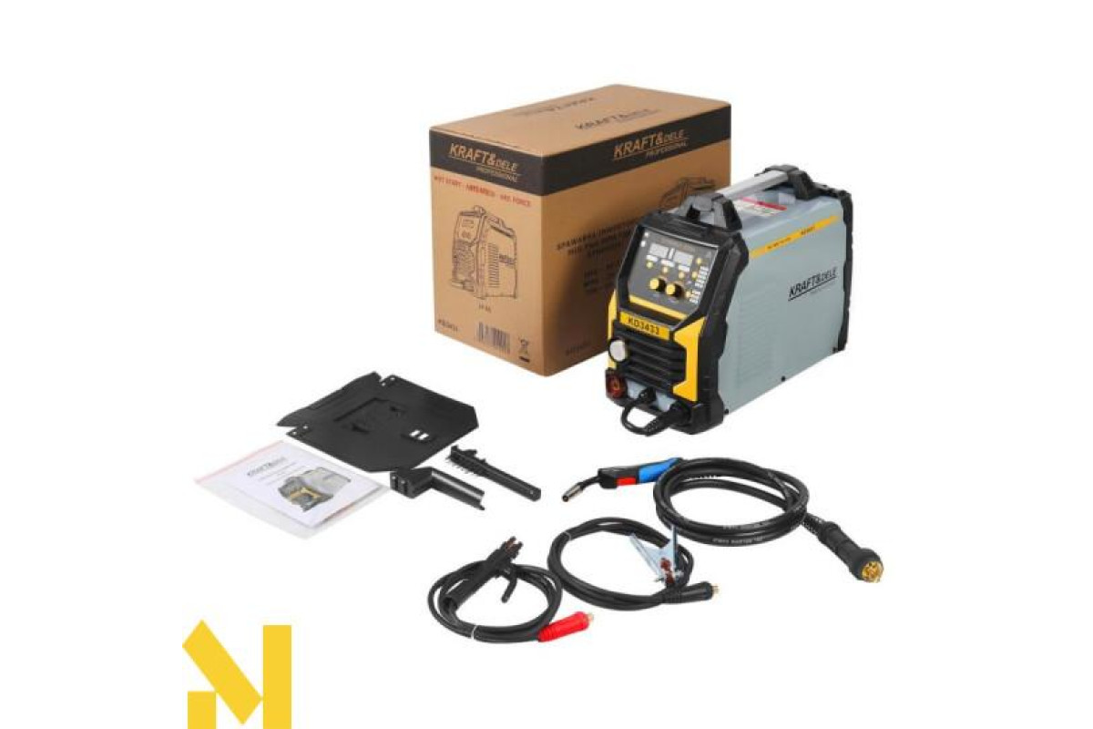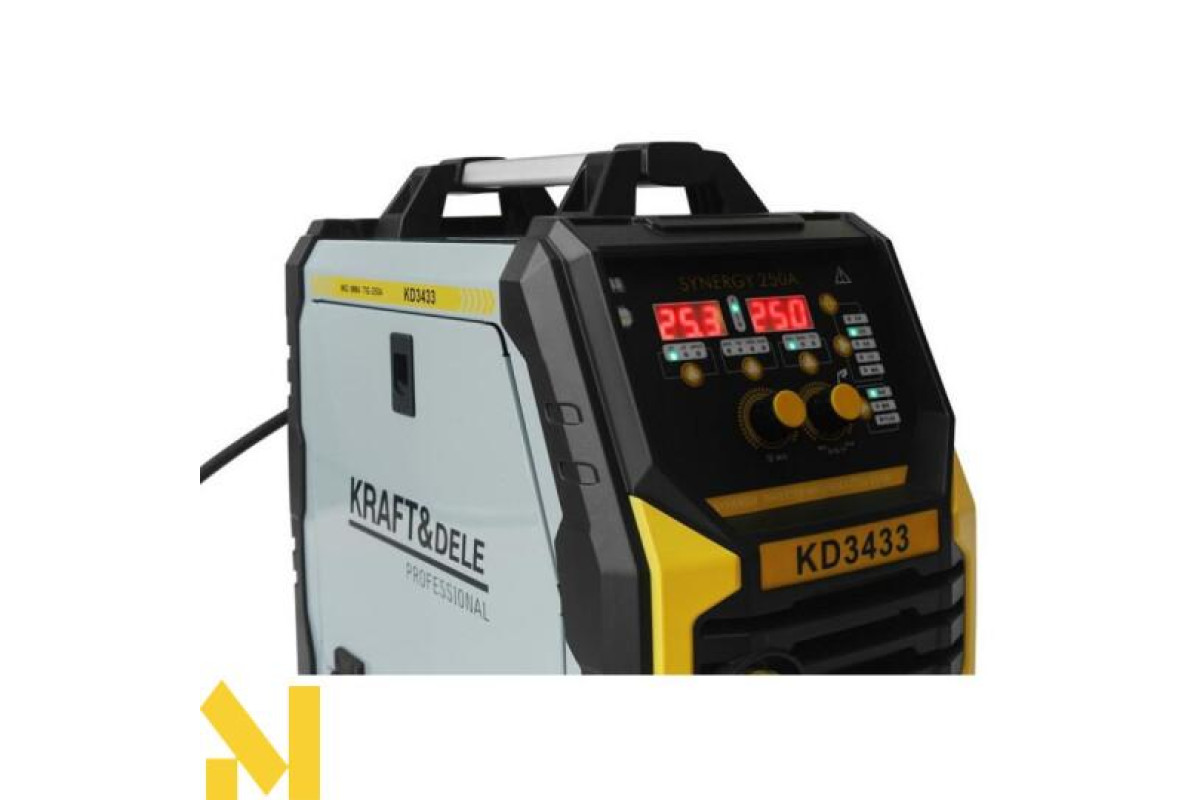 Інверторний зварювальний апарат KD3433 — це сучасний багатофункціональний пристрій, ідеально підходить як для домашніх майстерень, так і для професійного бізнесу. Підтримуючи методи зварювання MIG/MAG, MMA та Lift-TIG, він дозволяє виконувати широкий спектр зварювальних завдань, включаючи пайку тонких оцинкованих листів товщиною до 3 мм.