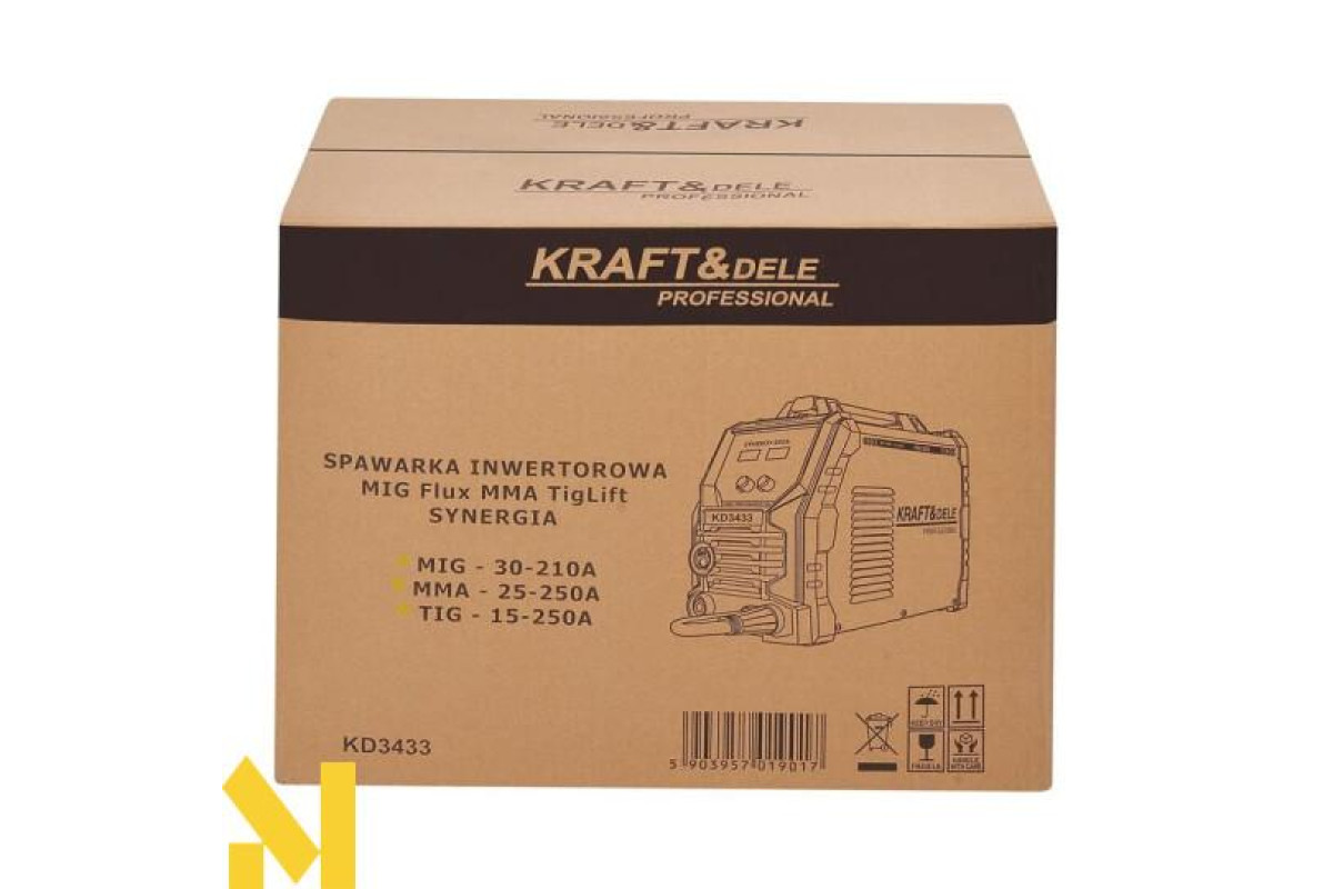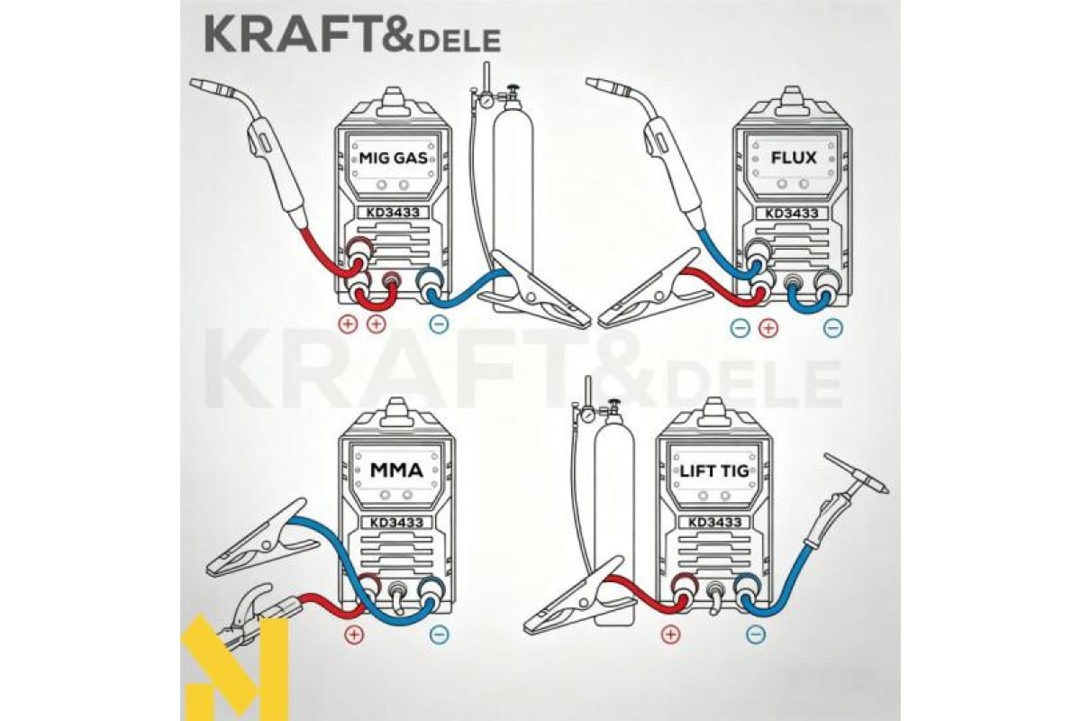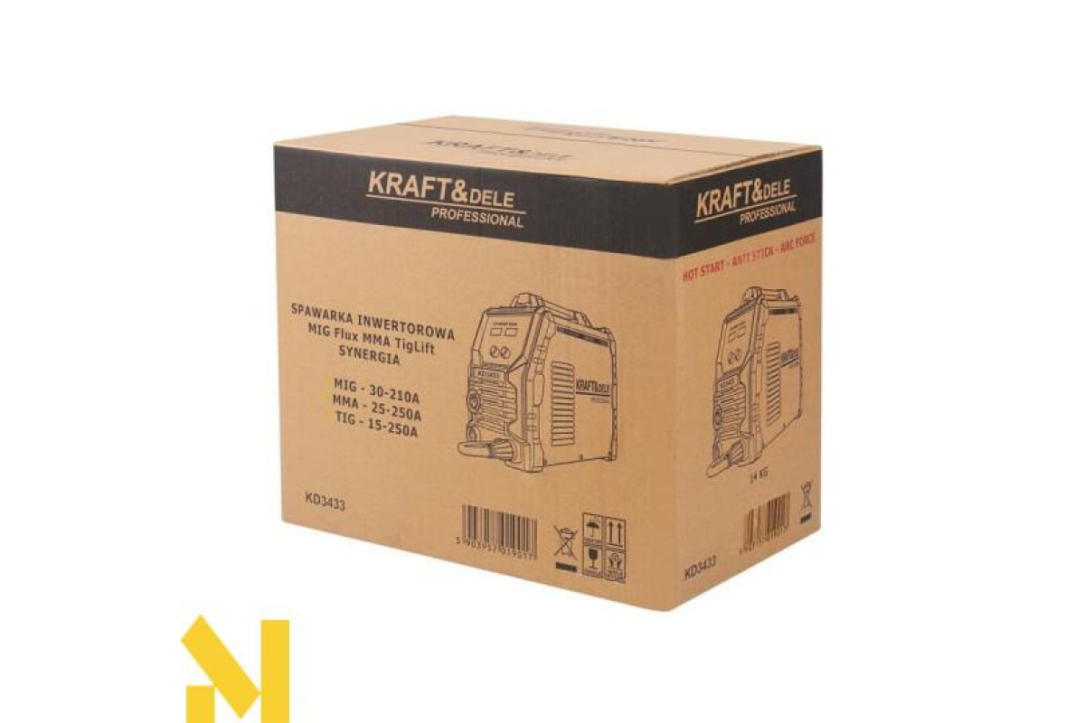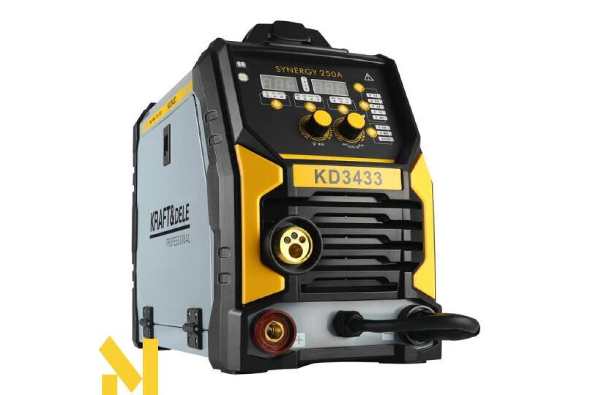 Інверторний зварювальний апарат KD3433 — це сучасний багатофункціональний пристрій, ідеально підходить як для домашніх майстерень, так і для професійного бізнесу. Підтримуючи методи зварювання MIG/MAG, MMA та Lift-TIG, він дозволяє виконувати широкий спектр зварювальних завдань, включаючи пайку тонких оцинкованих листів товщиною до 3 мм.