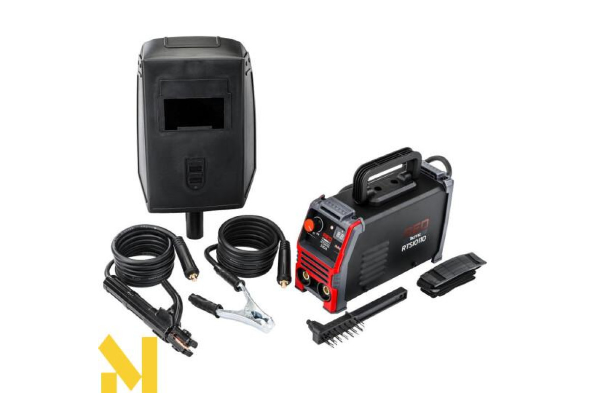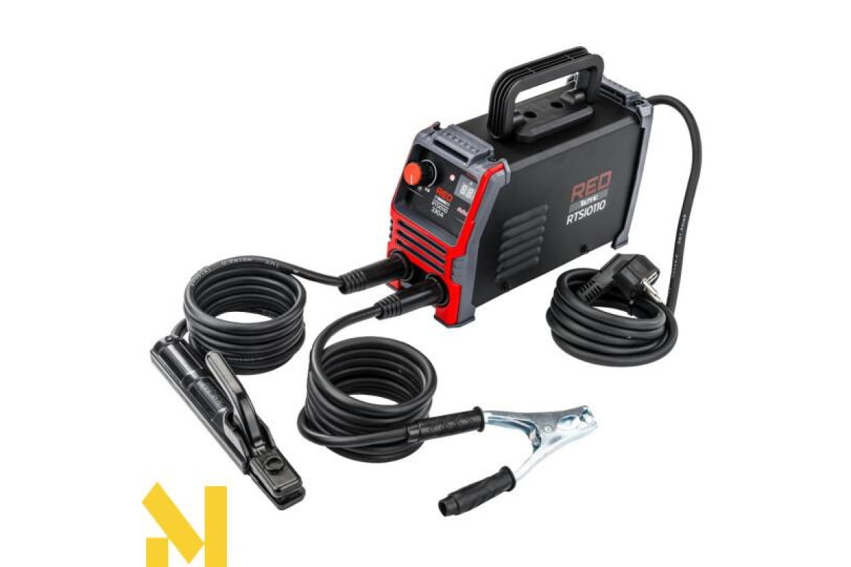 RTSI0110 - це інверторний зварювальний апарат на базі потужних IGBT-транзисторів. Він оснащений легко читабельним РК-дисплеєм, на якому відображається поточний зварювальний струм, що встановлюється кнопками. Зварювальний апарат оснащений вентилятором для охолодження електроніки та інших компонентів, а також термодатчиком для захисту пристрою від перегріву.