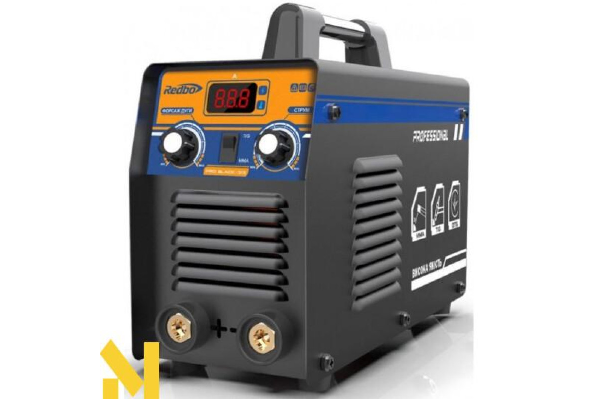 Redbo PRO BLACK-315 - надійний професійний зварювальний апарат, відмінно підійде для виробництв, майстерень і може легко впоратися з поставленими завданнями в побуті. Дуже добре справляється з електродами діаметром 1.6-5 мм, гарантуючи відмінний шов. Збільшені байонетні роз'єми гарантують відмінний контакт і довговічність з'єднань.