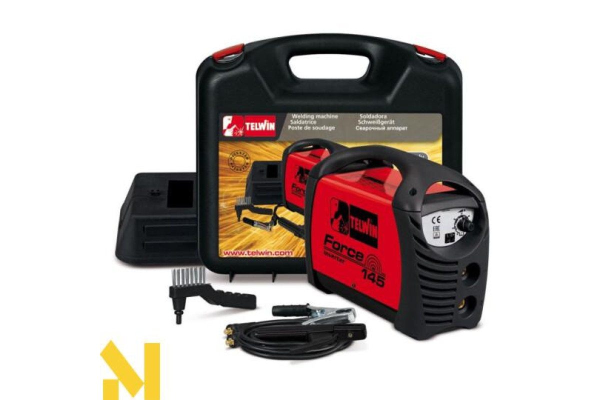 - Термостатичний захист, захист від перенапруги, низької напруги, перевантаження по струму, мотогенератор (+/- 15%) Апарат укомплектований приналежностями для зварювання ММА і пластмасовою валізкою.