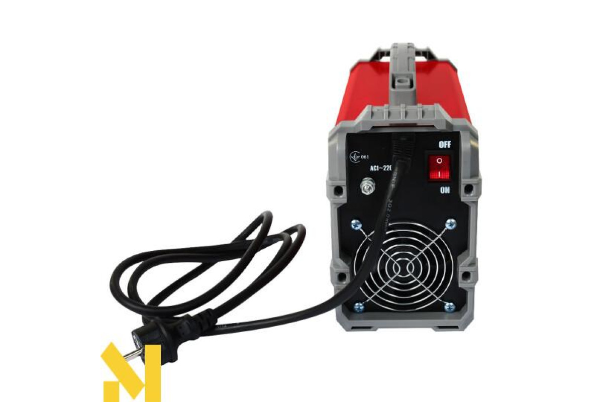Зварювальний апарат з кабелем електроживлення і рукояткою для перенесення;