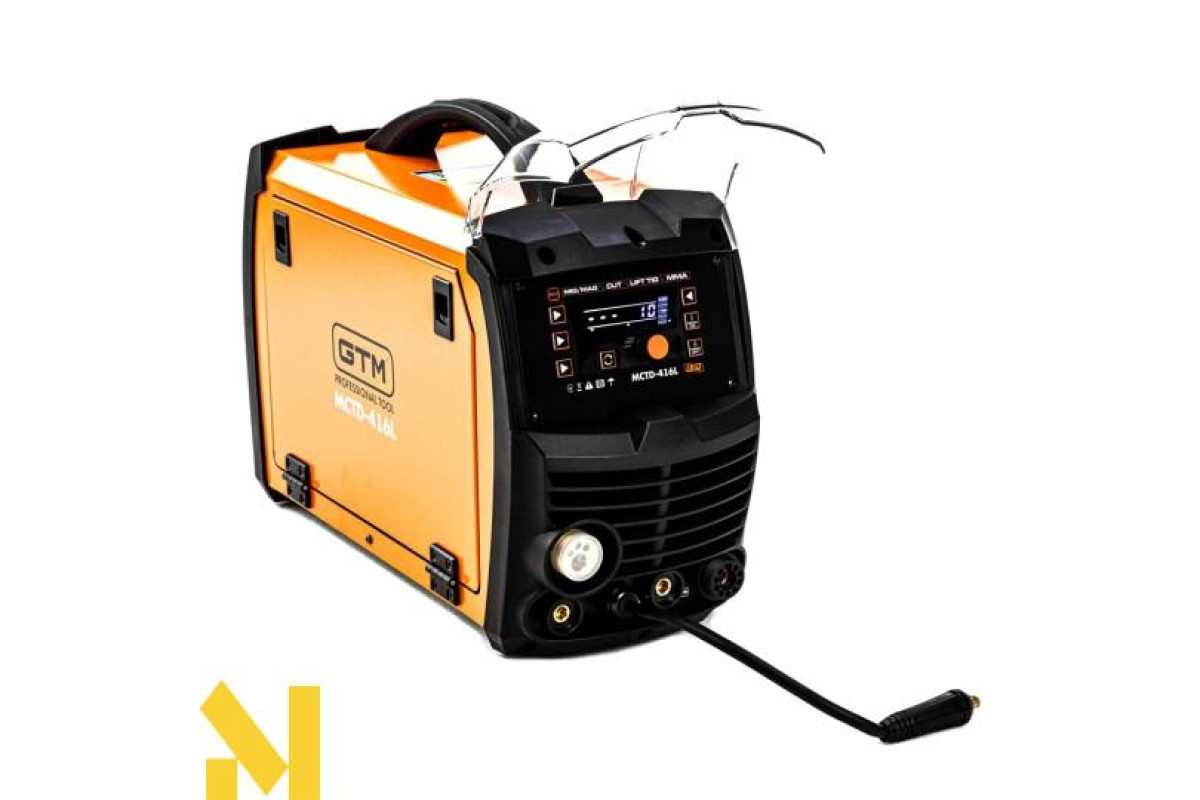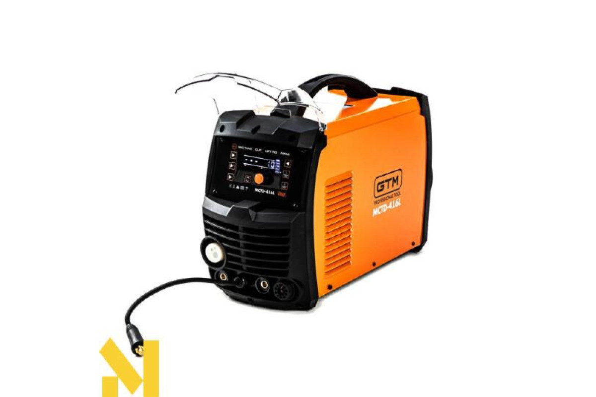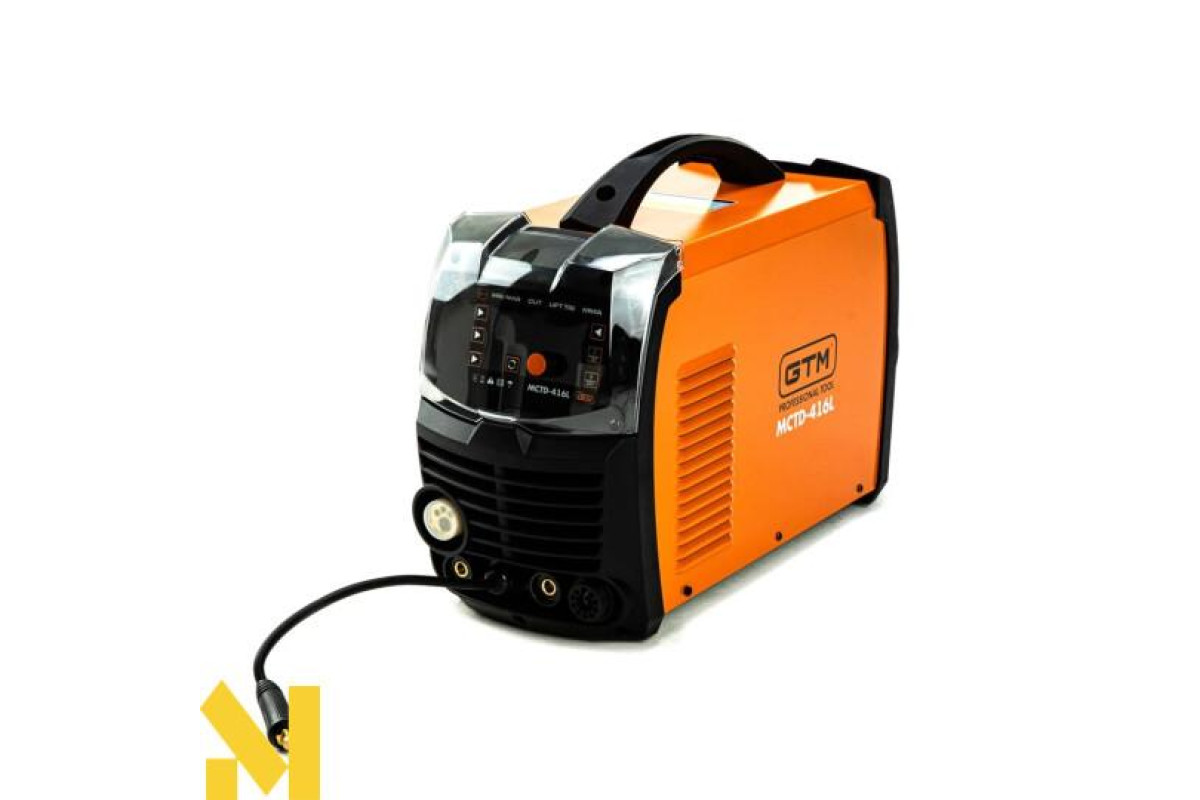GTM MCTD-416L - багатофункціональна установка для зварювання чорних металів у середовищі захисних газів. Відмінною особливістю цієї моделі є універсальність: крім основного режиму MIG, є режим ручного ММА і аргонодугового зварювання LIFT TIG, а також режим плазмового різання CUT. Напівавтомат обладнаний великим LCD-дисплеєм, на якому відображаються поточні налаштування і параметри.