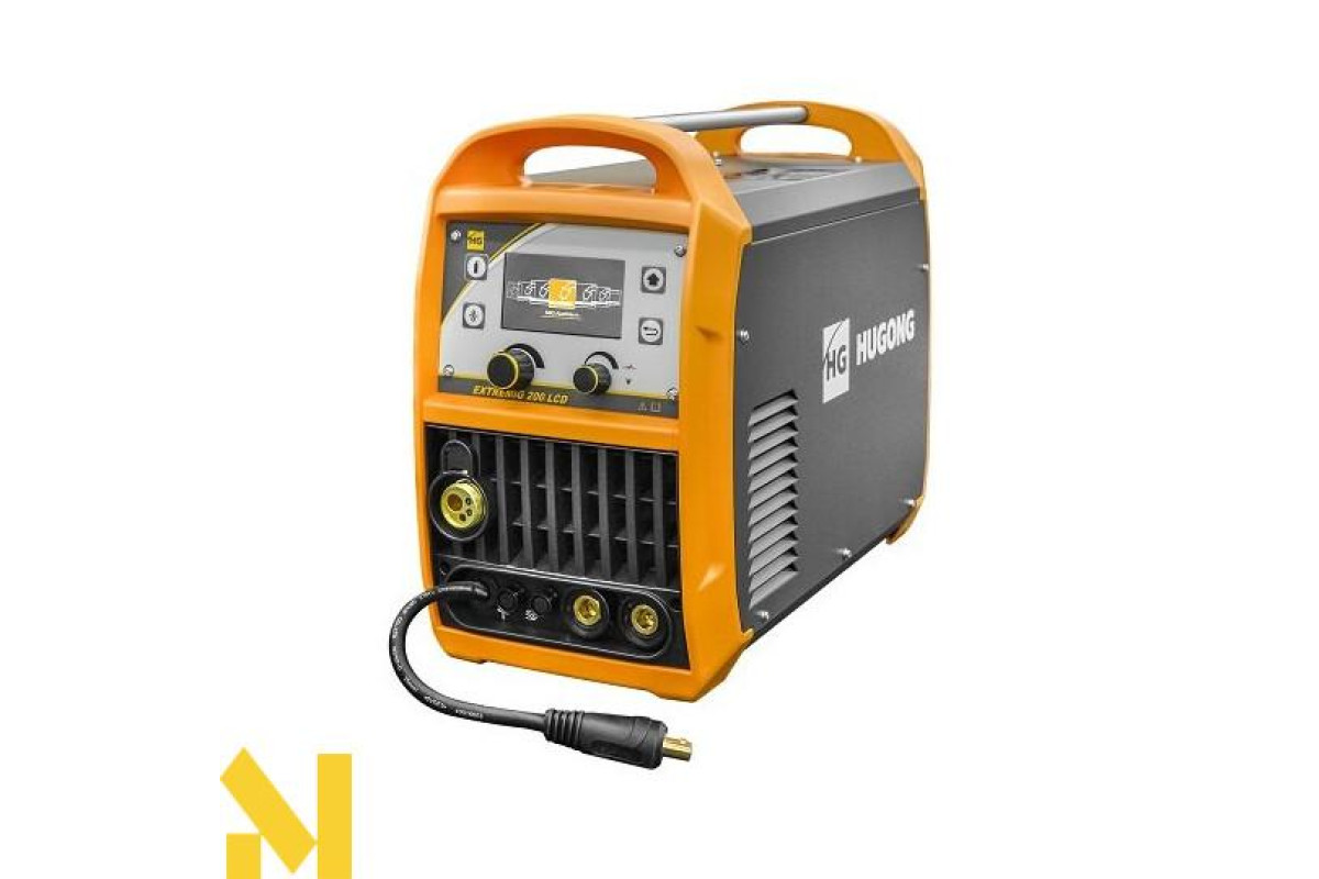 Hugong ExtreMig 200 LCD - компактний зварювальний напівавтомат MIG / MAG для зварювання вуглецевих, низьколегованих, нержавіючих сталей, алюмінію і його сплавів c розширеним набором налаштувань, синергетичним управлінням і LCD дисплеєм, пам'яттю режимів, а також можливістю зварювання покритим електродом ММА і аргонодугового зварювання неплавким електродом TIG на постійному струмі з функцією LIFT TIG. Зварювальні процеси MIG / MAG, MIG SPOT зварювання в режимі електрозаклепок, FCAW зварювання порошковим дротом MMA, Lift TIG аргонодугове зварювання неплавким електродом на постійному струмі, режим зварювання-паяння. Більше підійде для застосування в домашньому господарстві, майстерні, СТО (зварювання кузовів автомобіля) і т. ін. Пальник підключається через євророз'єм KZ-2 винесений на передню панель, там же розташований штекер перемикання полярності для зварювання самозахисним дротом.