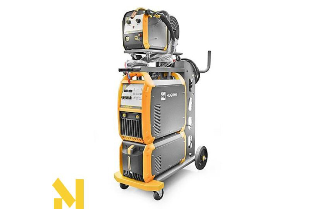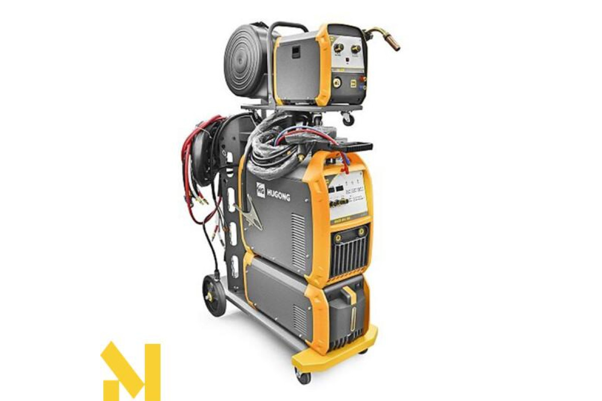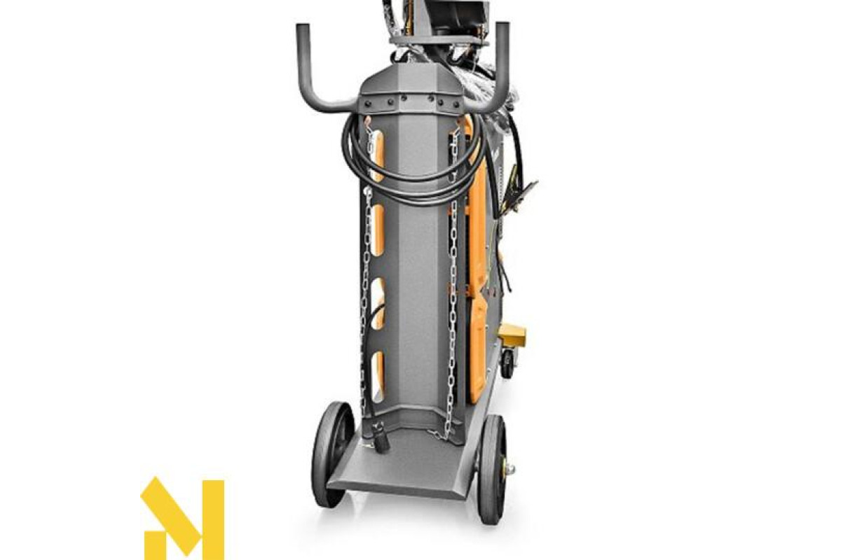 Промисловий зварювальний напівавтомат MIG / MAG з виносним механізмом, що подає для зварювання вуглецевих, низьколегованих, нержавіючих сталей c розширеним набором налаштувань і синергетичним управлінням, а також можливістю зварювання покритим електродом ММА на постійному струмі. Універсальна модульна конструкція апарату, що складається з джерела зварювального струму, що подає з незалежними колесами і блоком водяного охолодження, які встановлені на візок з поворотними передніми колесами і платформою для балона із захисним газом.