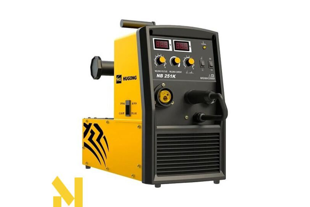 Напівавтомат HUGONG NB 251К MIG/MAG/MMA/TIG – призначений для ручного дугового зварювання покритим електродом завтовшки від 1,6 мм до 4 мм, зварювання порошковим дротом 0,6-1,2 мм, для напівавтоматичного зварювання в середовищі захисних газів. Модель видає зварювальний струм - 250 А, що дозволяє працювати з такими матеріалами, як нержавіюча сталь, високо-і низьковуглецеві сталі, низьколеговані сталі, чавун, алюміній та ін.