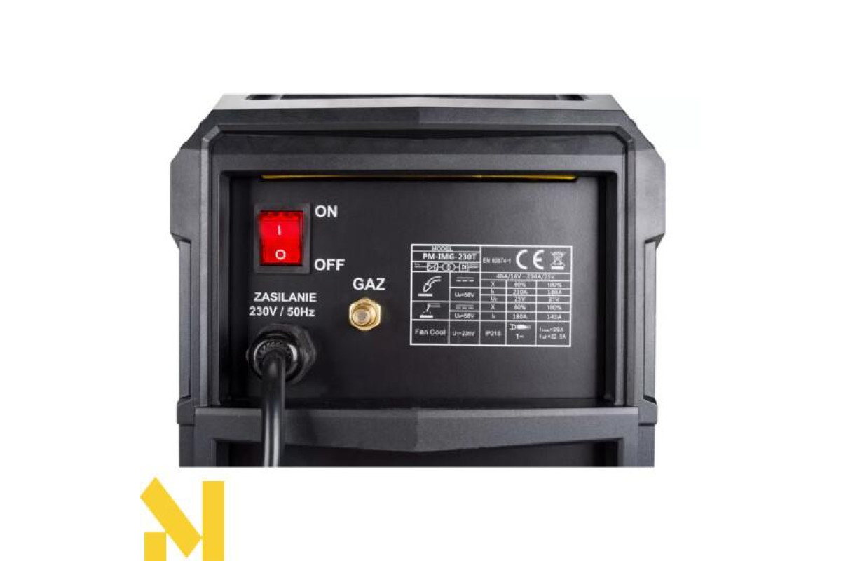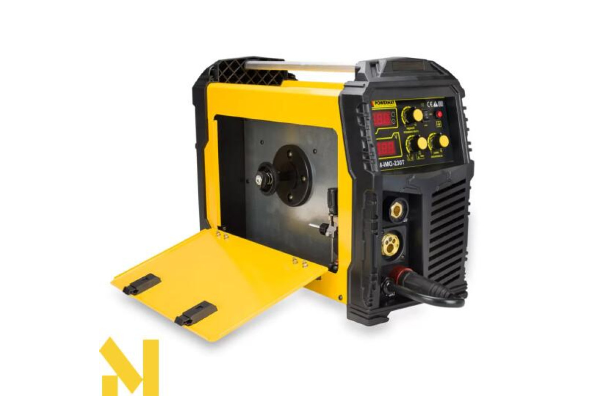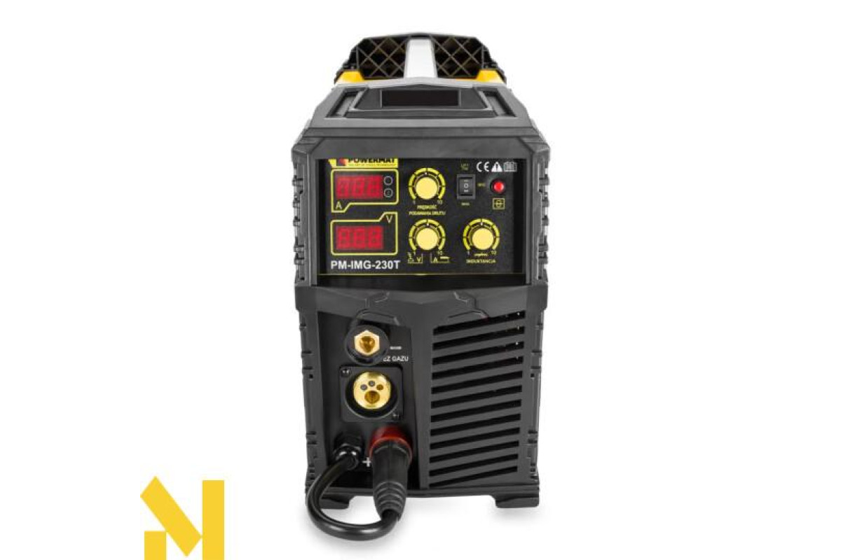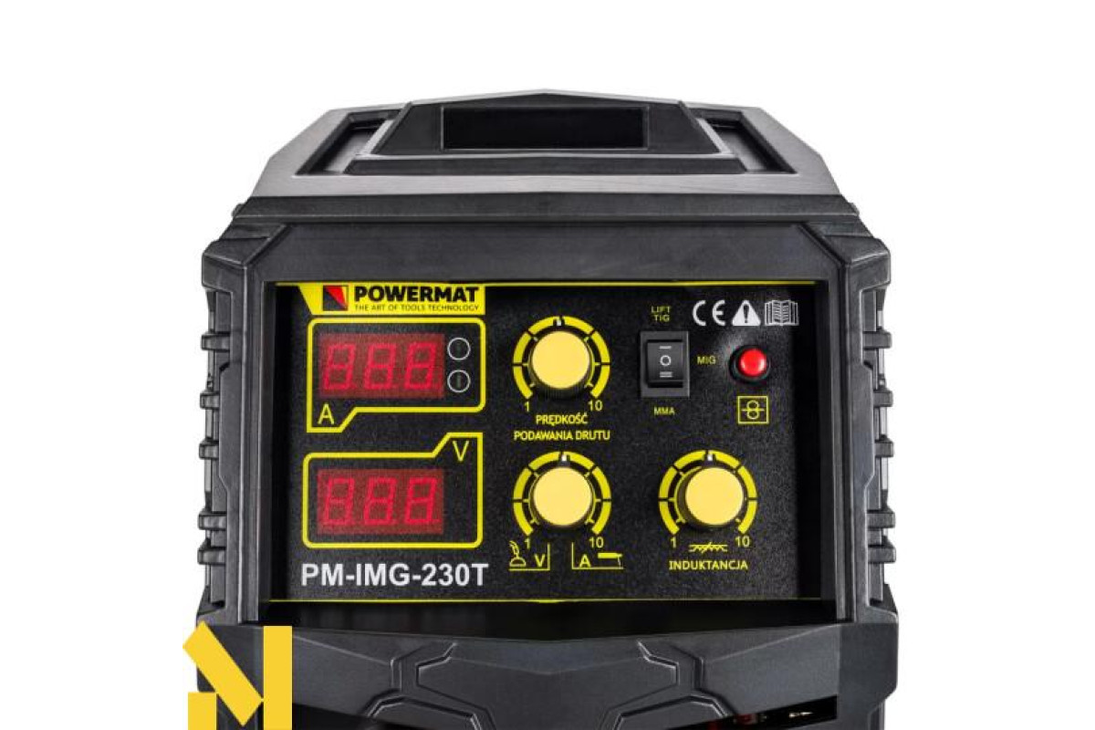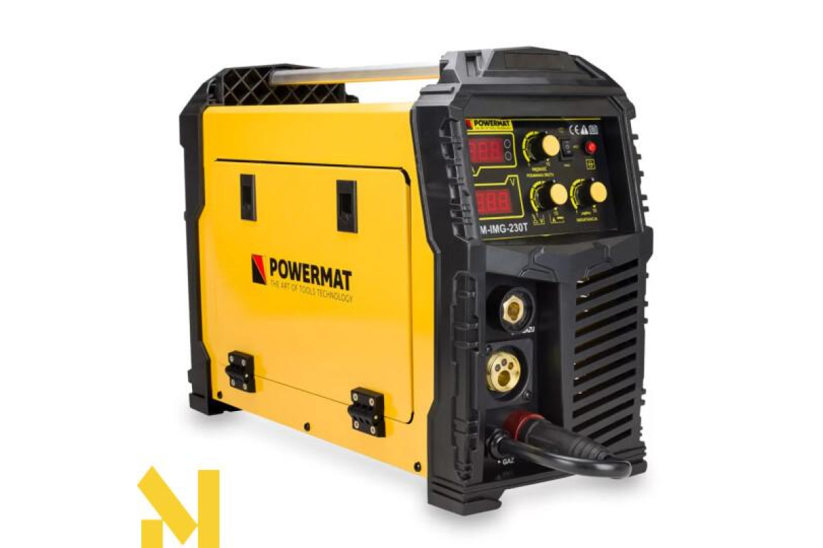 PM-IMG-230T від Powermat - це пристрій широкого спектру застосування, розроблений як інверторне джерело живлення, що дозволяє зварювати плавким дротом у захисному газі MIG/MAG або FCAW, самозахисним дротом (після зміни полярності), зварювати електродом з ММА покриттям. , а також методом TIG Lift (необхідно придбати додаткову ручку для зварювання TIG Lift)