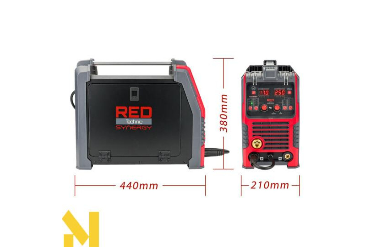 Напівавтоматичний зварювальний апарат RED Technic RTMSTF0002 має дуже широкий спектр застосування. Він дозволяє ефективно зварювати різні типи матеріалів у широкому діапазоні товщини. Використовувані IGBT-транзистори відрізняються низьким споживанням електроенергії, підвищеною стійкістю до шумів і перепадів напруги, а також хорошими характеристиками дуги.