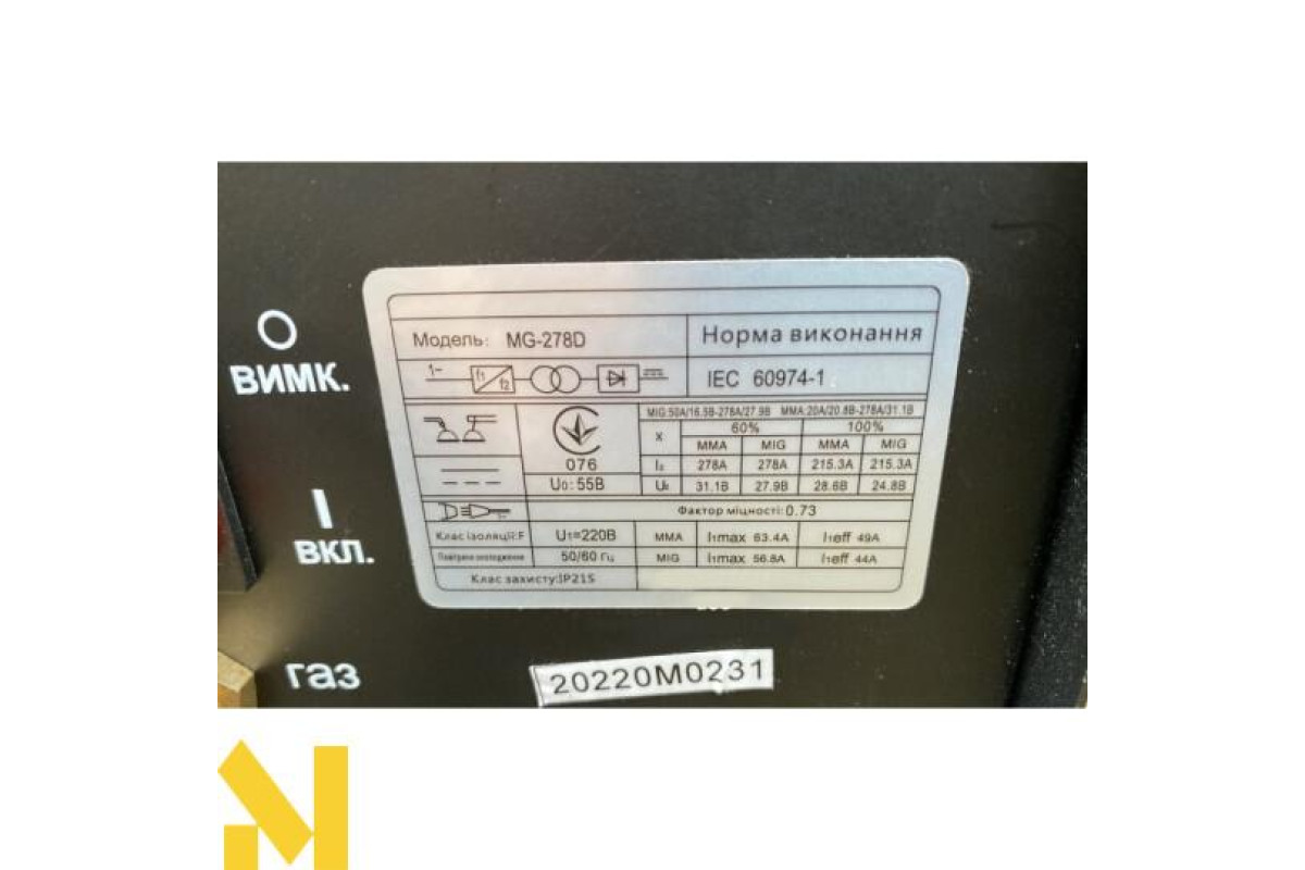 Максимальний зварювальний струм, А | 278 |