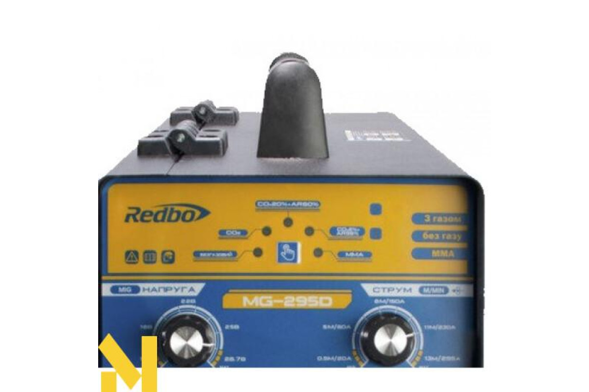 Зварювальний напівавтомат Redbo MG-295D входить до лінійки побутової техніки для зварювання. Силові транзистори в нього інверторні. Це агрегат зручний і простий у роботі і з ним виконують як дугове ручне зварювання з електродами (різними за діаметром і типом покриття), так і напівавтоматичним, зі зварювальним або флюсовим порошковим дротом, в середовищі захисного газу (аргонового або вуглекислого) і без газу. Витрата електроенергії з ним економна, а коефіцієнт корисної дії високий. Агрегат має покращені технічні характеристики, кілька систем захисту від низької напруги, перегрівання, короткого замикання та додаткових корисних функцій, які спрощують роботу з ним та роблять її безпечнішою, а результат завжди якісним. При приєднанні через євророз'єм вентильного пальника з контактним підпалом з ним проводять і аргонно-дугове зварювання.