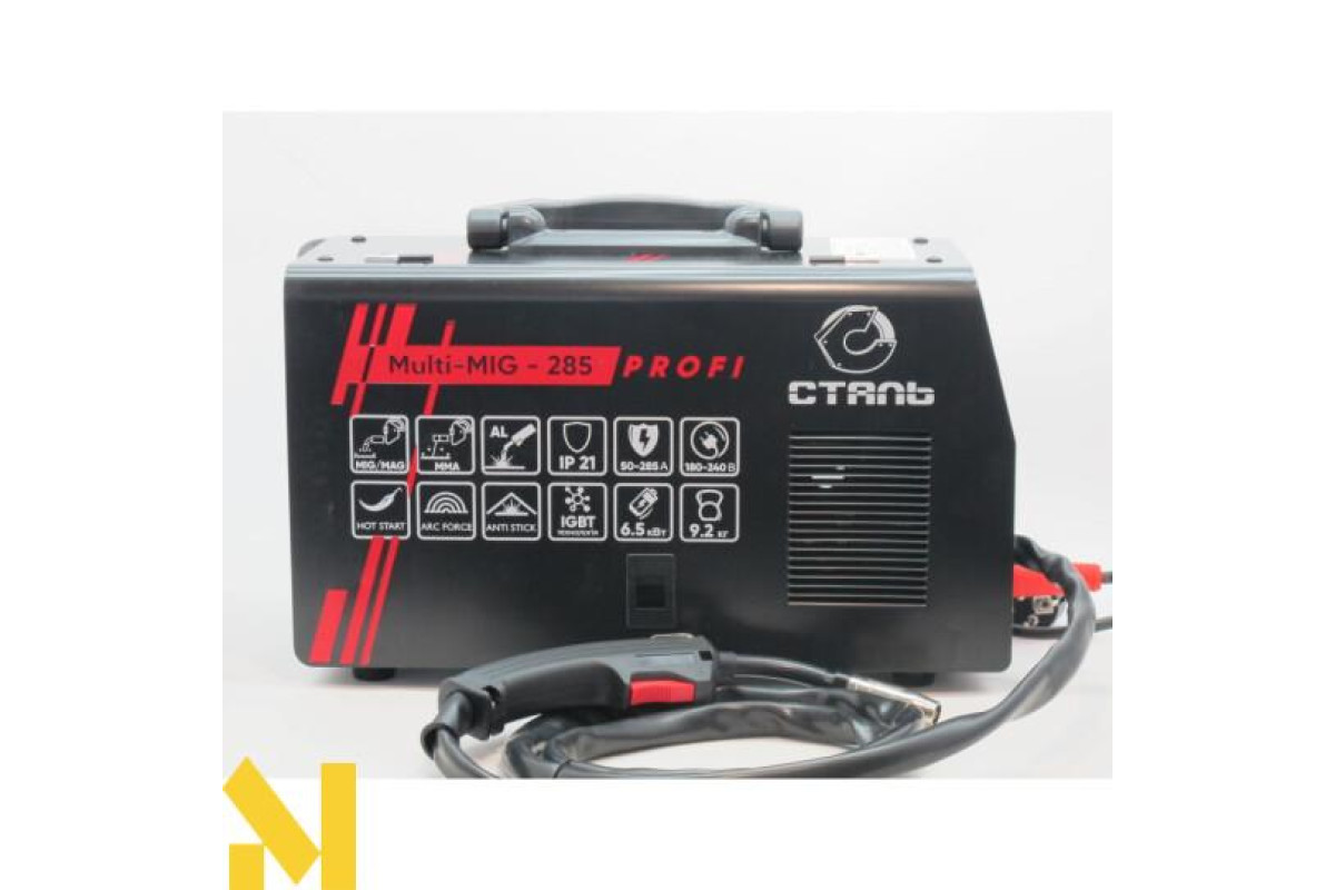 Окремо варто відзначити зручність і простоту в використанні, завдяки додатковим функціям Hot Start; Antisticking; Arc Force, які забезпечують швидкий розпал дуги і вбережуть від залипання електрода, так що варити або різати метал зможе навіть початківець. Для зручності експлуатації Сталь Multi-MIG-285 Profi обладнаний двома електронними дисплеями, які дозволяють швидко і точно налаштувати і контролювати такі параметри зварювання, як струм, напруга, швидкість подачі дроту, що дозволить виробляти рівний шов і якісне різання металу.