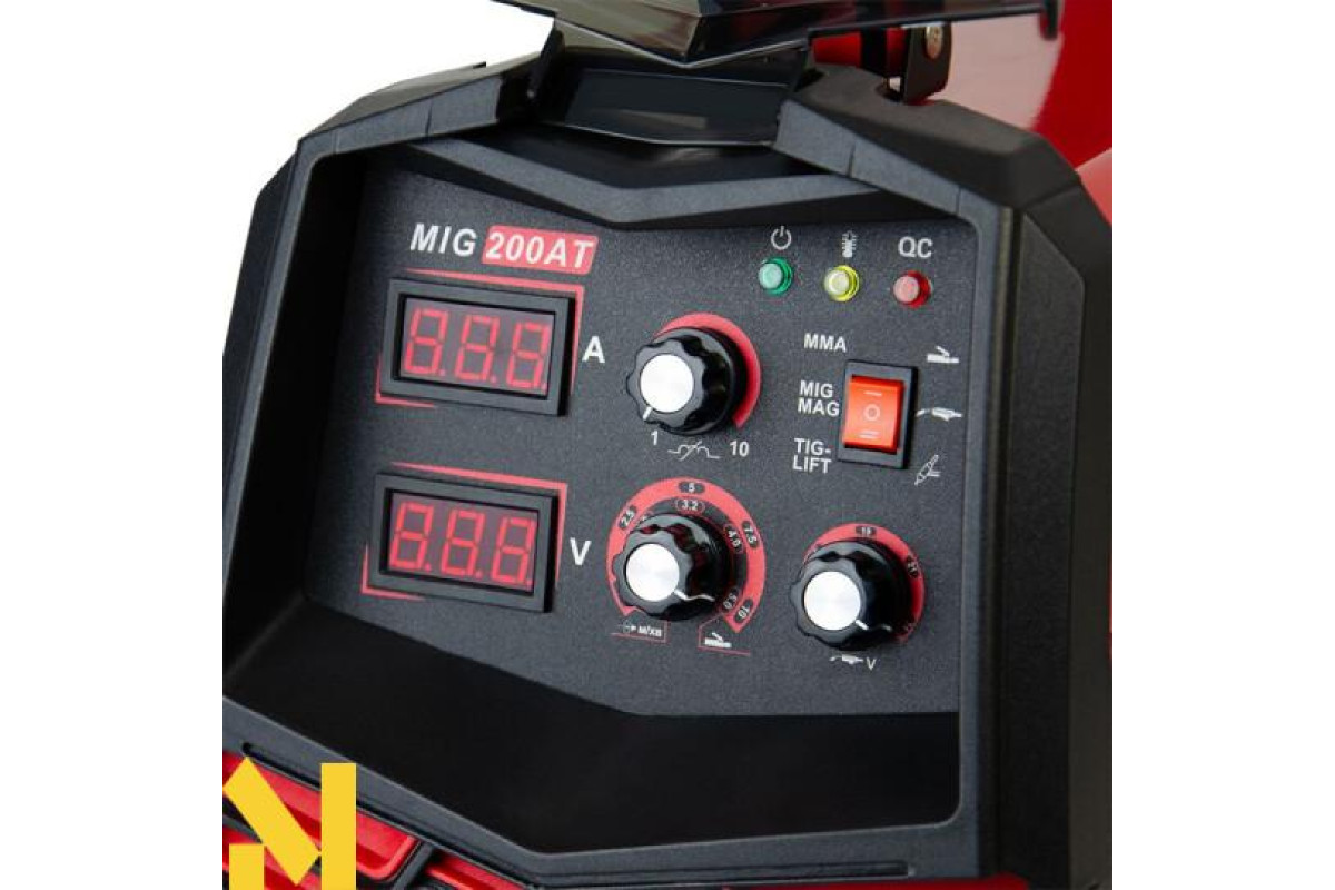 Завдяки міцній конструкції та стабільній подачі дроту MIG-200AT забезпечує комфортну роботу навіть під час тривалих сеансів.